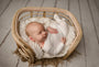 This rattan daybed is our nod to midcentury modern design; the beautiful lines are visually stunning! It's lightweight, sturdy, and full of natural texture. The MCM Bed is a versatile prop you’ll reach for again and again for newborns and sitters alike.