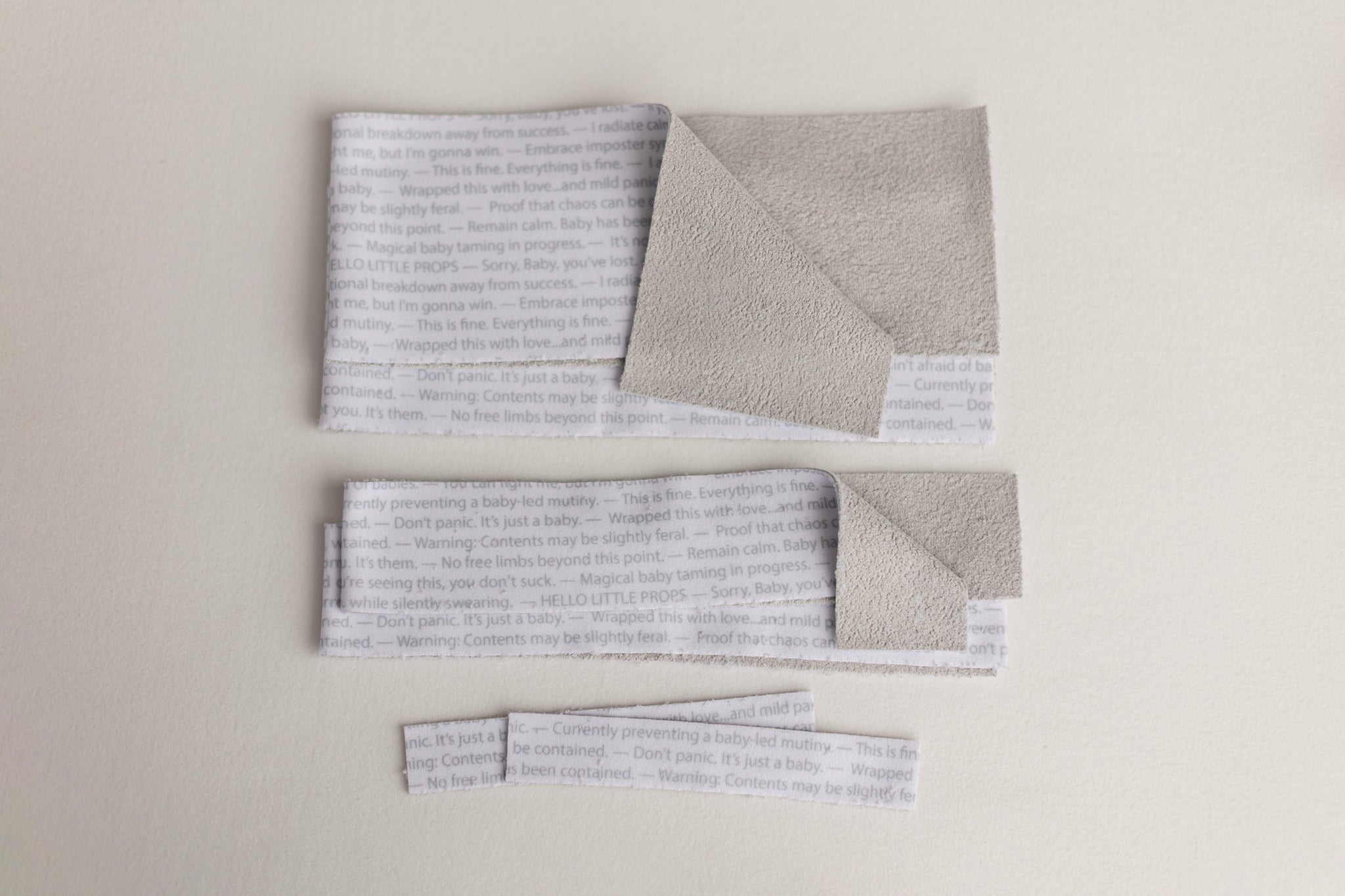 The pieces are just stretchy enough to hug the baby, but stiff enough to keep baby in place. These are meant to be used as an under-wrap or a way to secure the arms/legs for specific set ups such as mugshots, night-night, and more.
