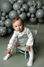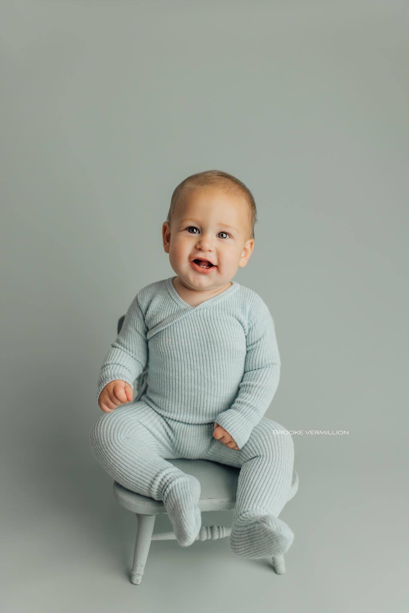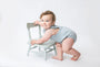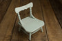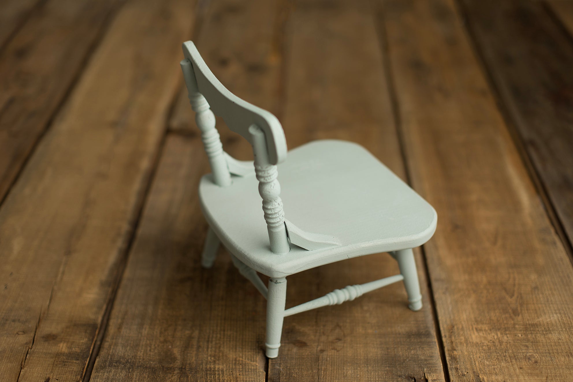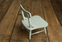 Your Grandma's Chair, the newest newborn and sitter posing prop from Hello Little Props. This chair comes in a minty blue toned distressed finish. Please note that each chair is finished by hand and the overall look is meant to replicate layers of paint as if the piece has been in the family for years. No two chairs will look exactly alike.